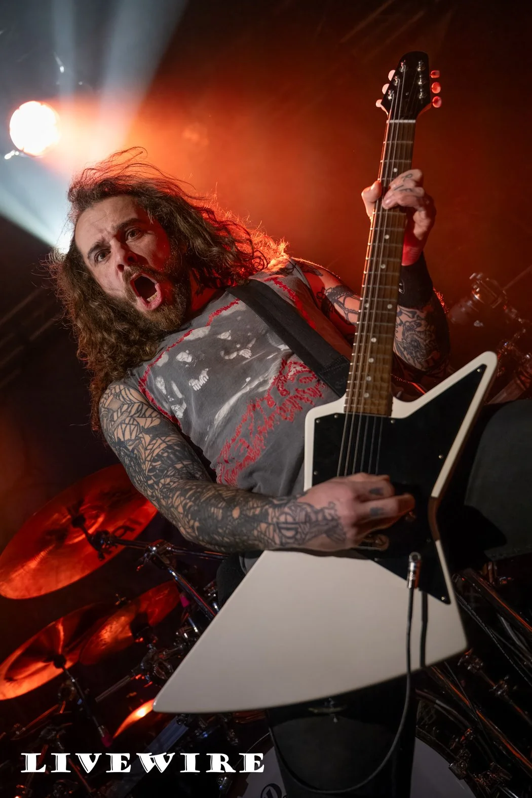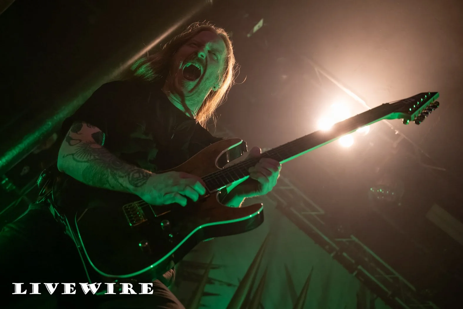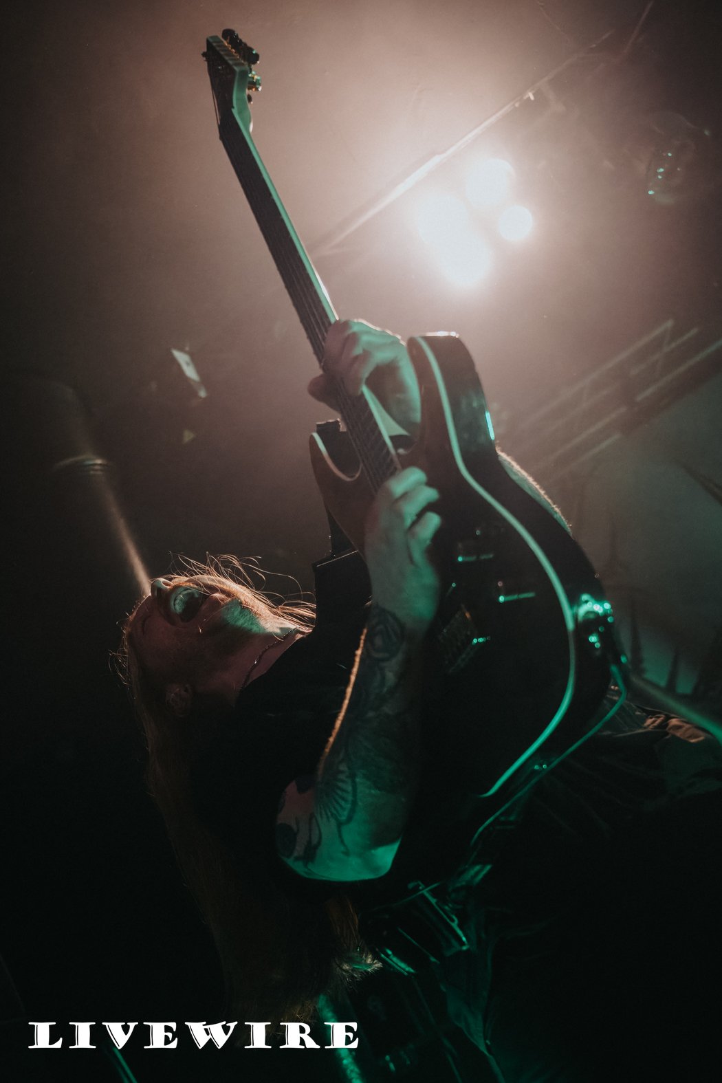 From opening track to closer, the set is relentless – it’s brutal in its intensity, from chest thumping drums to crushing riffs and those insane guttural vocals. It feels like you’re being sonically assaulted – utterly brilliant. Just before the end, there’s a moment of soft calm, as the iconic opening of I Am Damnation (taken from the 2022 album “Shrine”) drifts across the crowd. It doesn’t last long, before the intensity kicks in and Scott’s vocals roar out across the room. The guitar sections have heads banging and the crowd scream back the chorus towards the stage.