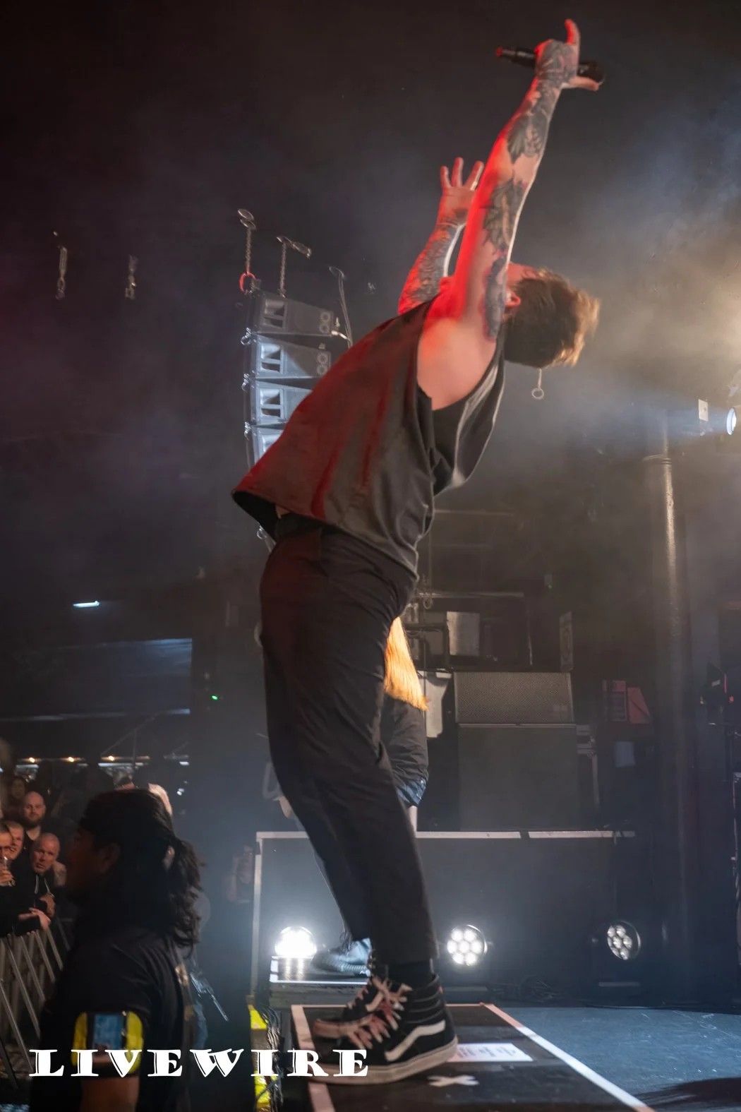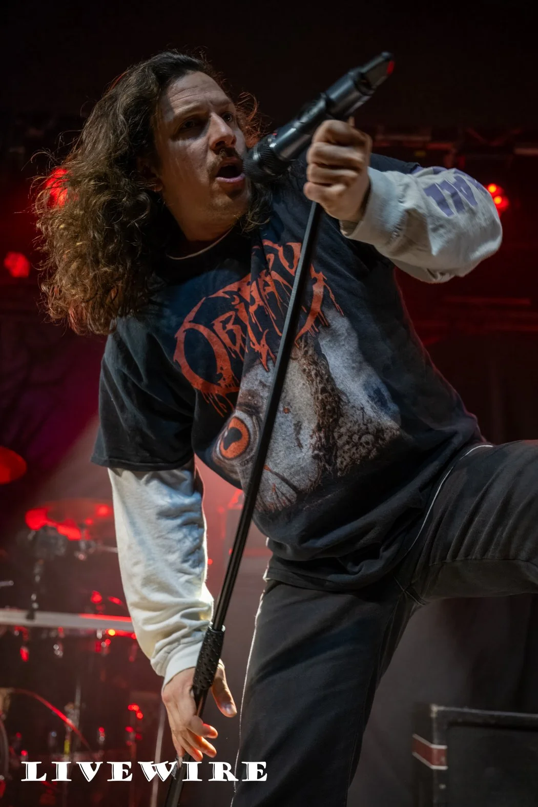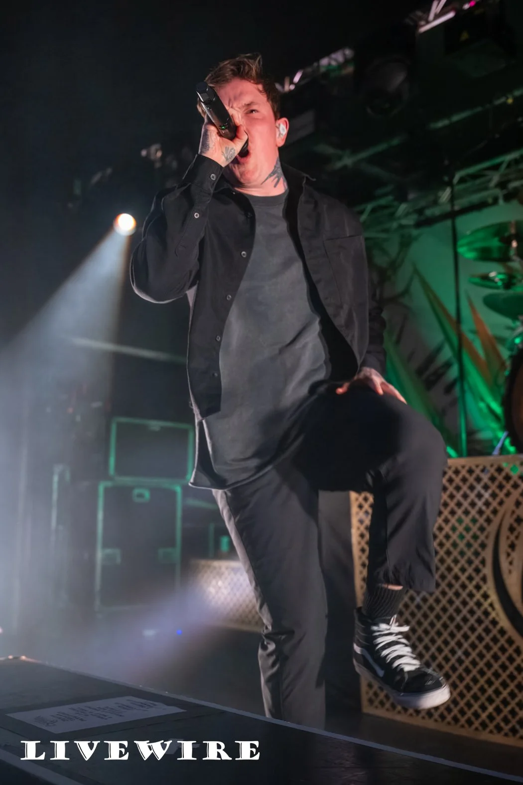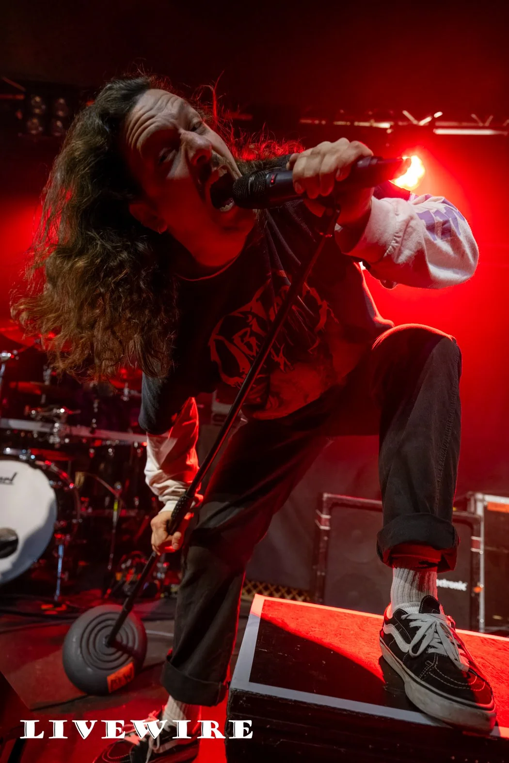 From opening track to closer, the set is relentless – it’s brutal in its intensity, from chest thumping drums to crushing riffs and those insane guttural vocals. It feels like you’re being sonically assaulted – utterly brilliant. Just before the end, there’s a moment of soft calm, as the iconic opening of I Am Damnation (taken from the 2022 album “Shrine”) drifts across the crowd. It doesn’t last long, before the intensity kicks in and Scott’s vocals roar out across the room. The guitar sections have heads banging and the crowd scream back the chorus towards the stage.