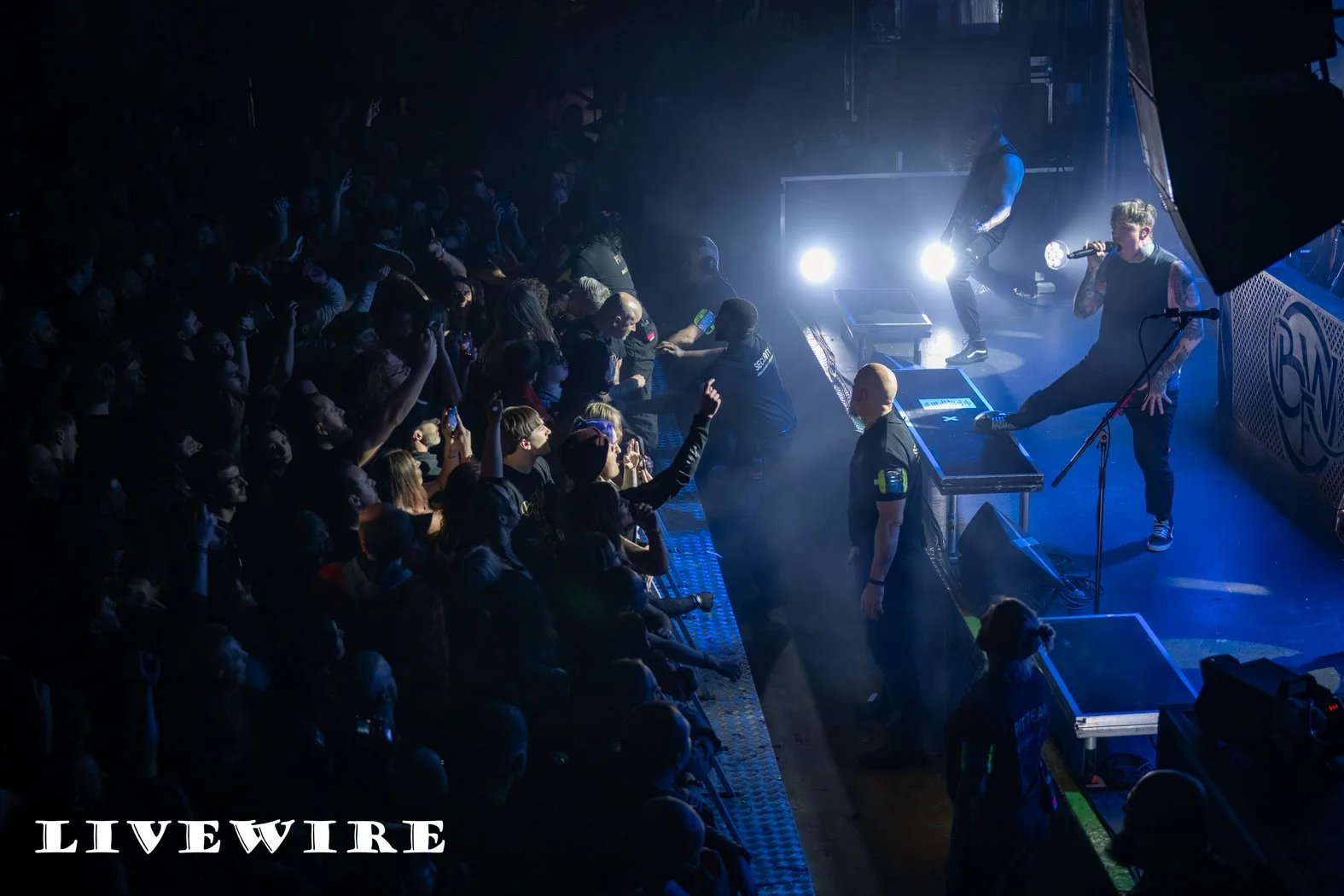 I needn’t have worried, as soon as Bleed from Within hit the stage, the atmosphere rose further to 11. With additional security ready in the pit, it was clear they were ready for a tidal wave of fans, surfing across. And the Nottingham crowd didn’t disappoint, with the first surfers coming over during opening track Zenith. As each landed safely in the pit, Scott would reach down and fist bump them as a mark of respect.