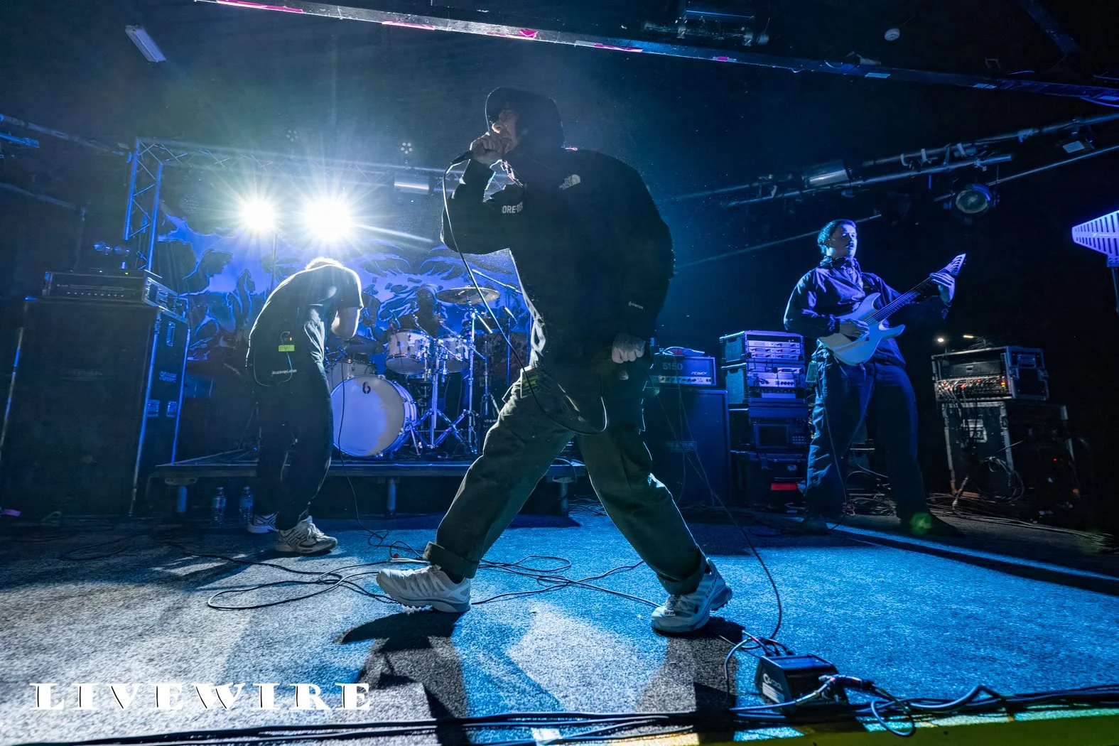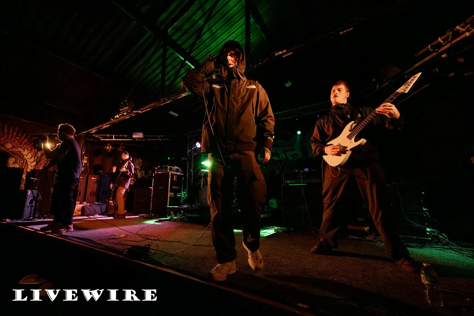No time to waste, a short break for fresh air and it’s time for some US spinkick deathcore, courtesy of Psycho-Frame. Their sound was much darker than Big Ass Truck and they utilised two singers, who constantly prowled the stage. One in a jacket, hood up hiding his face delivering some fantastic guttural roars, whilst the other more casually dressed, delivering the more rap element of the vocals. The contrast and connection between the two was fantastic, and on such a small stage space, they seemed almost uncannily aware of where each other were.