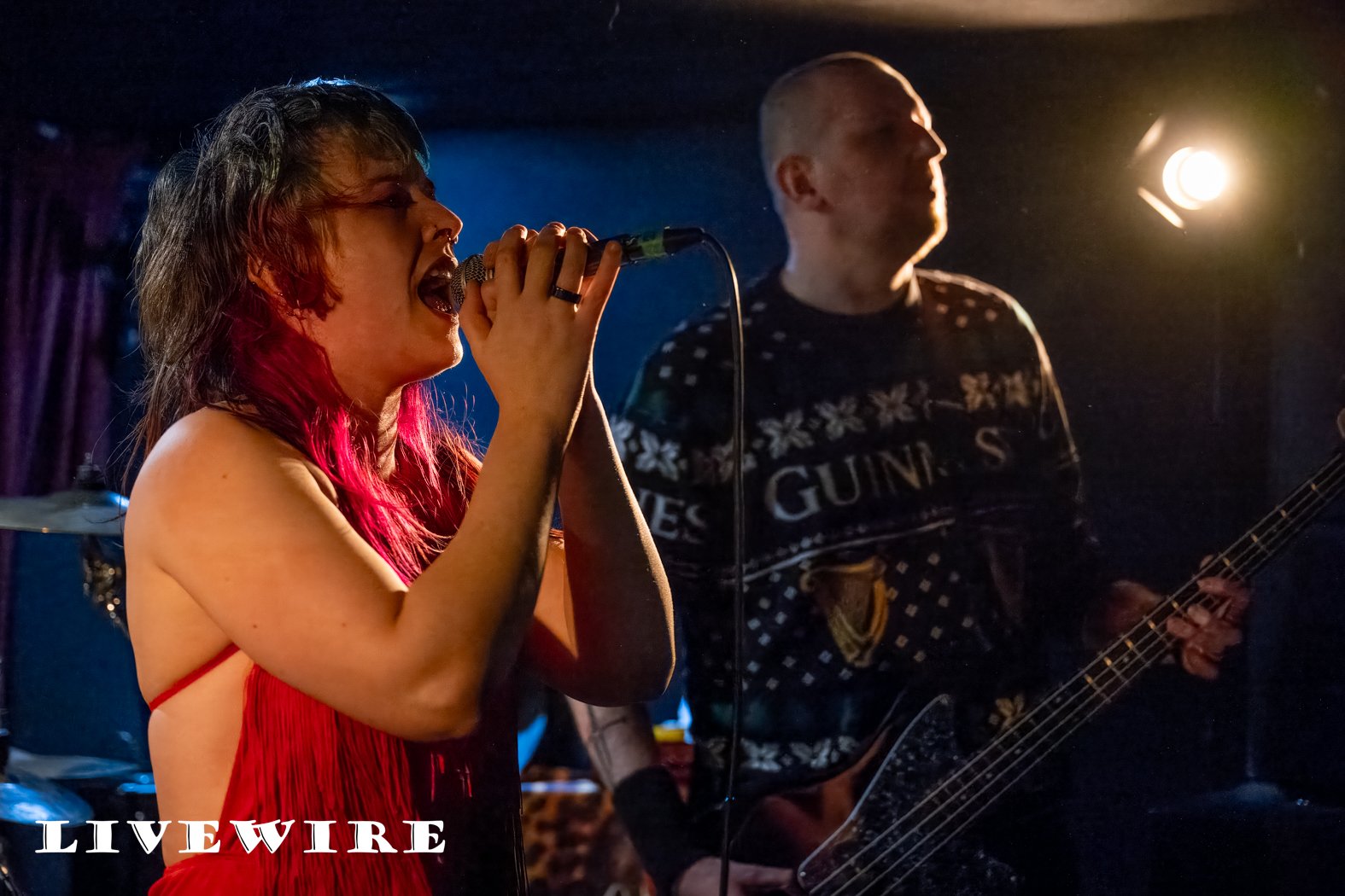 Next up are another local outfit in the Silkrats who are Jen on Vocals, Adam on Guitar, Jon on Bass and Max on Drums. Silkrats play what they describe as luxury rock and are packed with energy. Getting in the festive spirit Jon is in his Guinness sweater, a move he soon regrets as the temperature rises through the set lol.