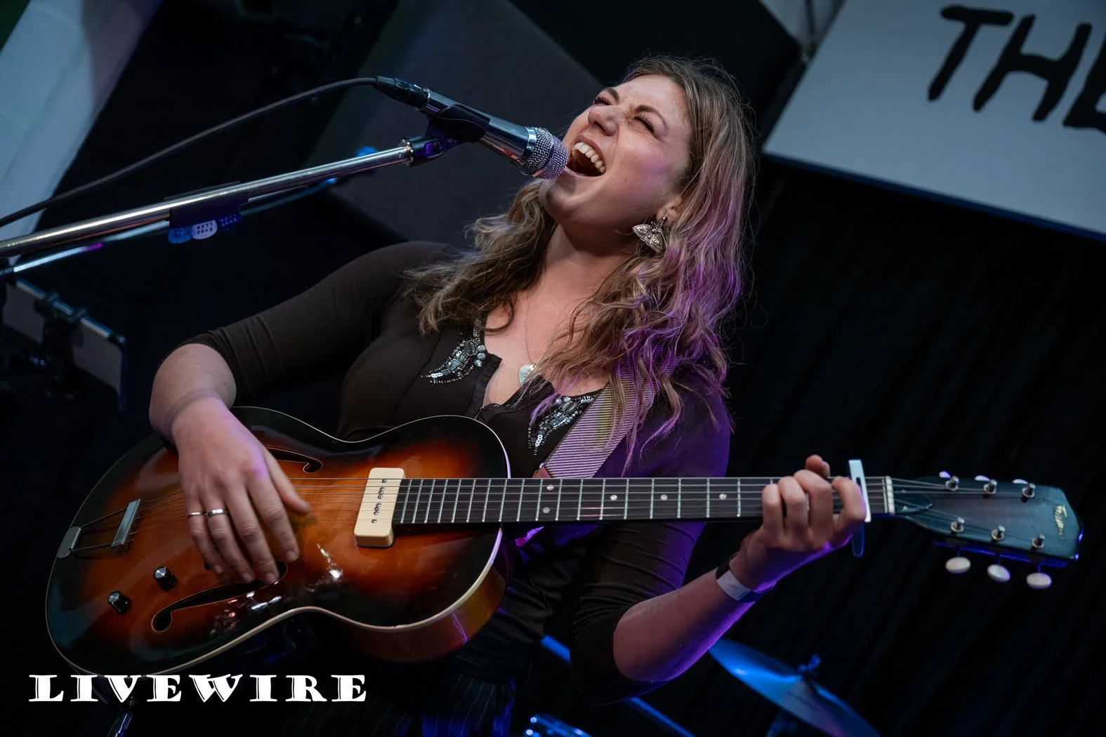 Introducing the track Please Me a song about her struggles to allow relationships time to connect her lyrics are meaningful and emotive, and remind me of Imelda May on her album “11 Past the Hour”. On Could It be You? Ella describes her experiences of a first date at the cinema (a fateful first date mix !) and encourages the crowd to sing along providing the harmonies for the chorus.
