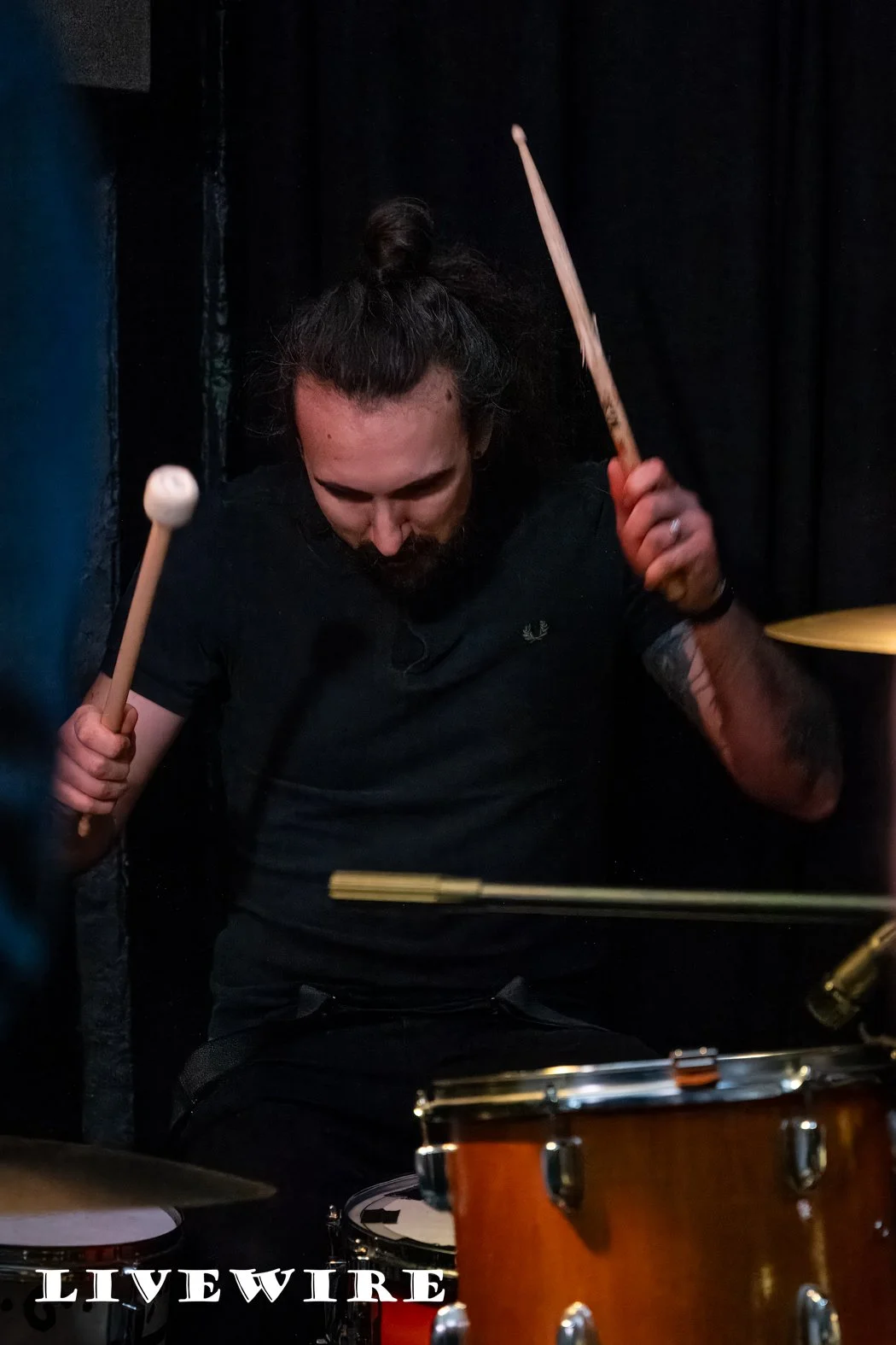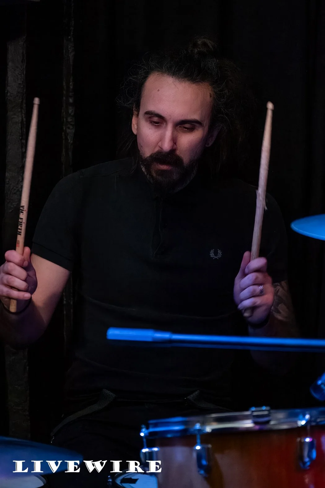 Opening with Nova we move on to the classic Havoc from 2017’s “Atelo” with the violin bow drawn across guitar strings, creating a soft soulful background to the track, as cymbals crash like the tide building to a powerful melody. Sam’s high delicate vocals seem to drift around the room effortlessly. We also dip into the waters of the “Carrier” EP from 2019 with Silo which build slowly and has the most delightful piano section – delicate and simple. Every track is emotional and powerful. I’ve heard comparison to Sigur Rós and it is well justified. Not many manage to capture the beauty of music quite like Eyre Llew.