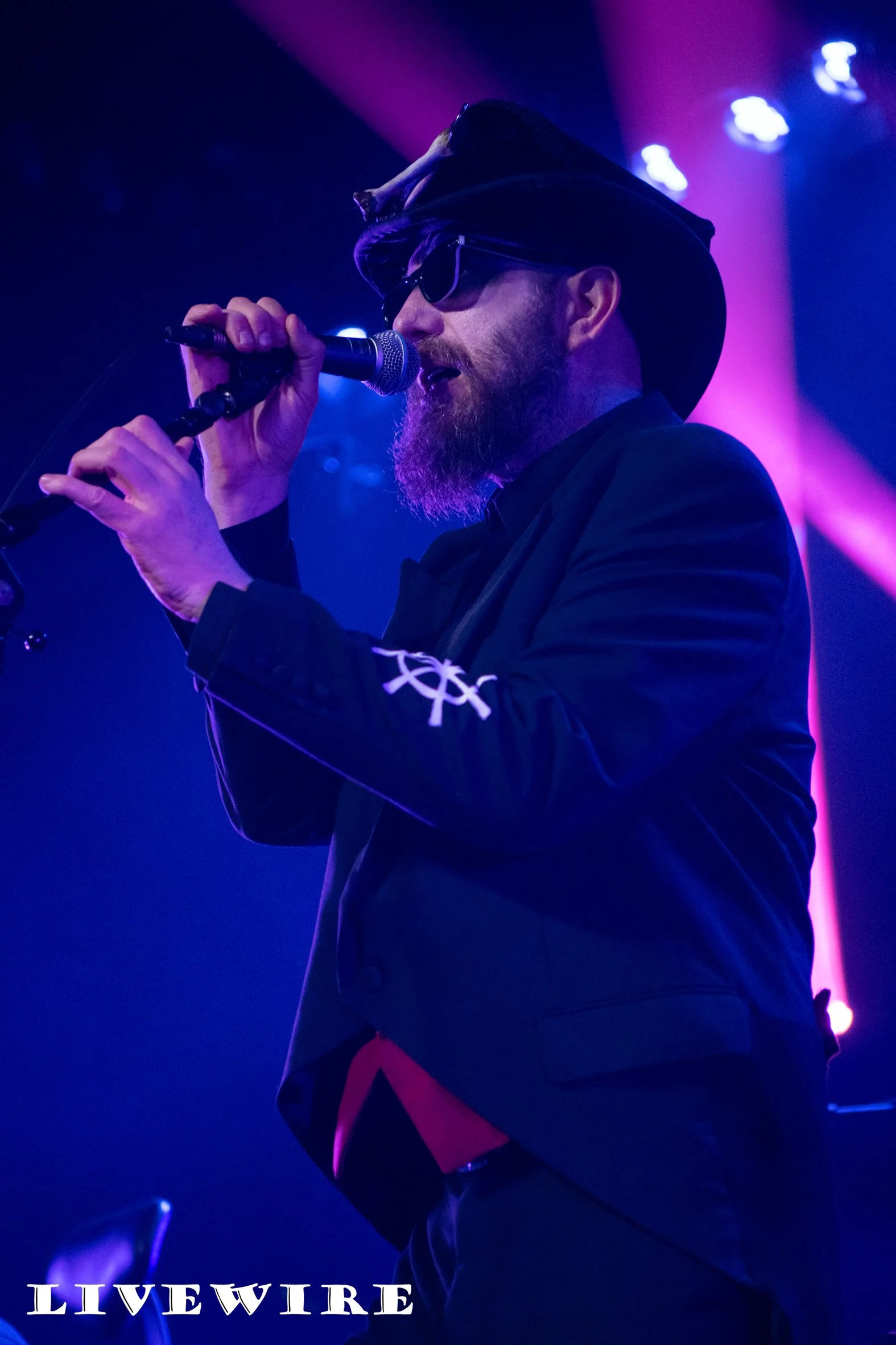 As the lights dimmed, Big John Duncan walked out onto the stage, followed by Jim Brady, now added to the line up on guitar. The crowd erupted in applause as he took his seat on the stage, before Martin Metcalfe and the other band members joined him on stage. As well as Jim, they are now joined by Tippi Hedron on vocals. Martin strikes a formidable figure on stage in long dress coat and hat pulled low over his eyes as they opened with the lively 1988 single (and fan favourite) Open Your Arms. Immediately, I felt 21 again ! The delivery was spot on and it really got the crowd into the mood. This is followed by Hard (from their final album “Five” 1994) before another classic fave in the form of His Masters Voice rages out at us. Jim and Tippi feel so natural in the lineup, and in particular the addition of a second guitar gives the tracks added depth.