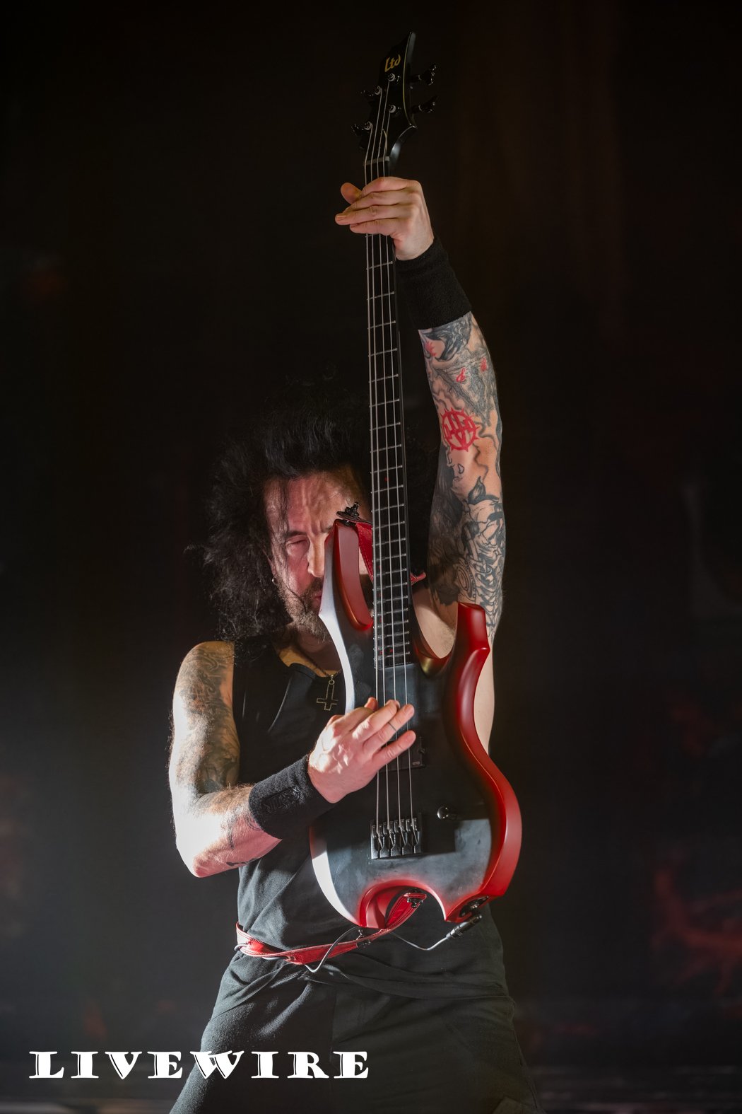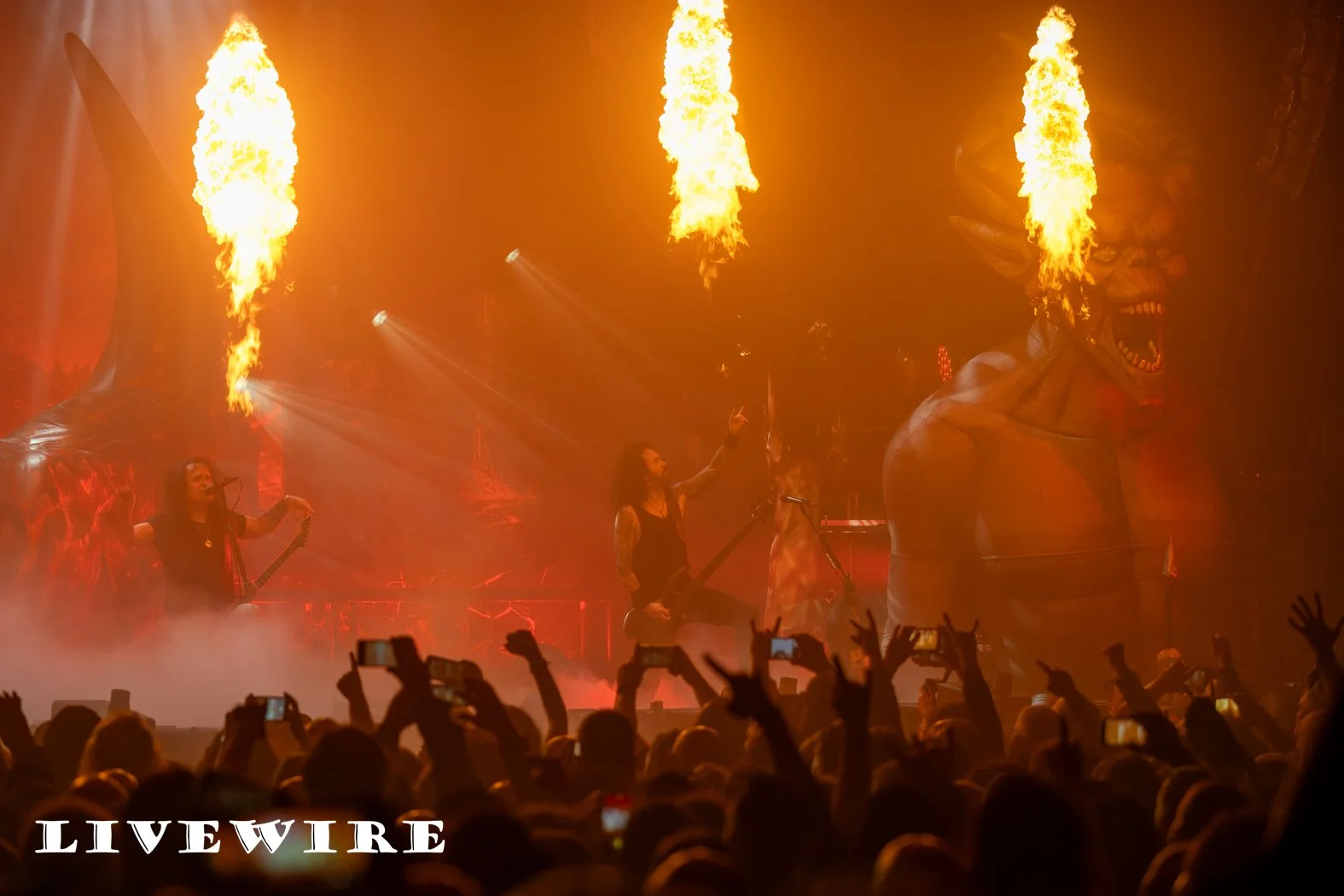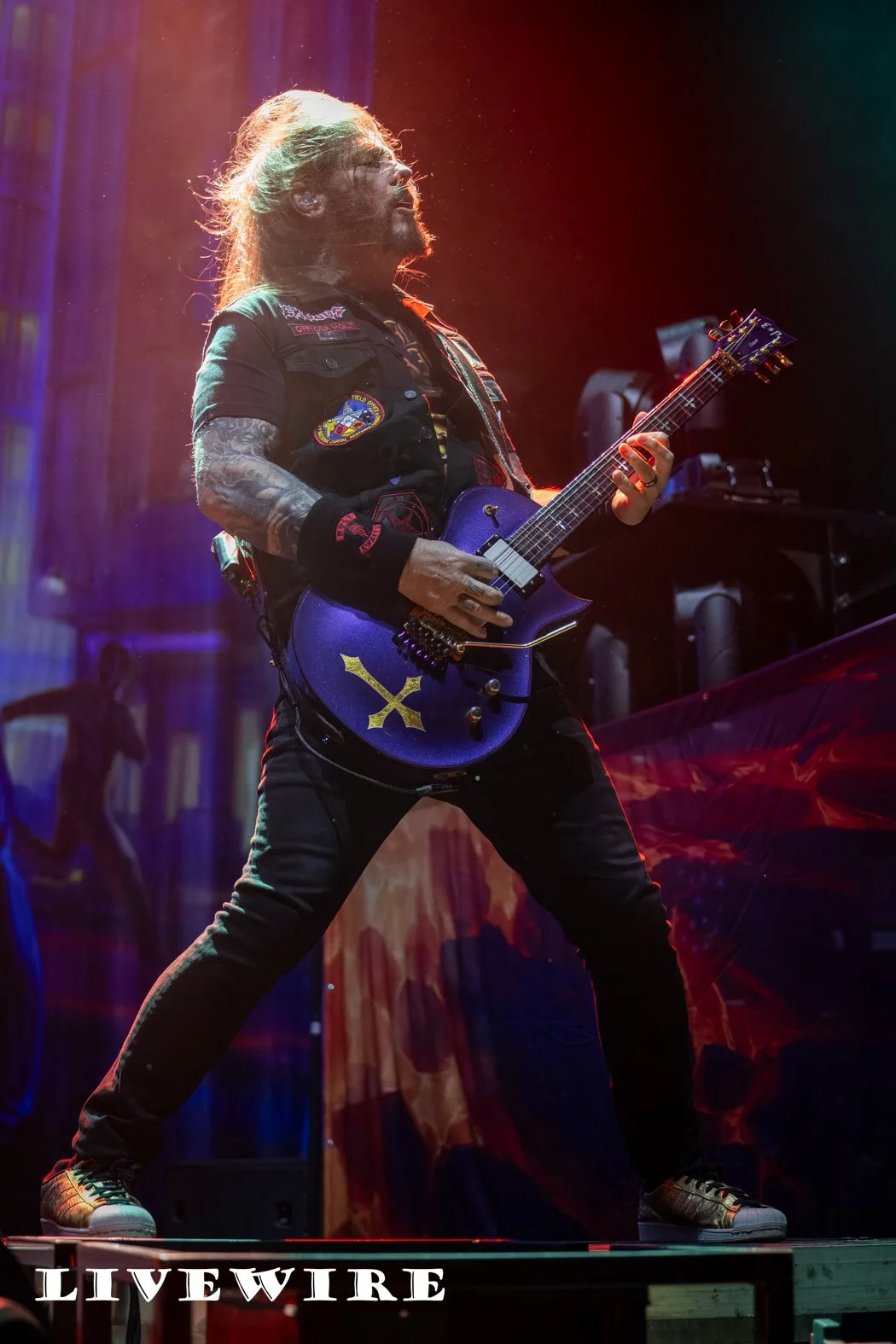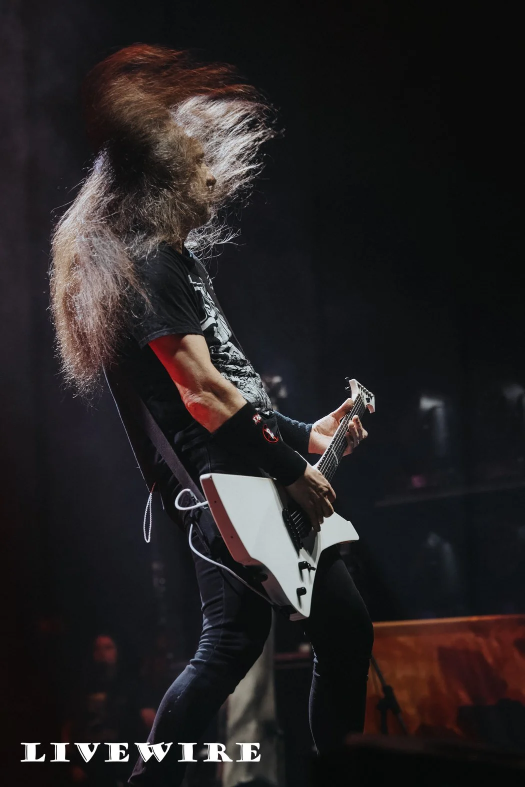 The Apollo crowd are lapping it up and singing along with passion to tracks like the icons Bonded by Bloodthe title track of their 1985 debut and it’s vinyl partner A Lesson In Violence. The pit is in full swing now and it tips over the edge as they tease a snippet of Slayer’s Raining Blood before transitioning into the magnificent The Toxic Waltz.