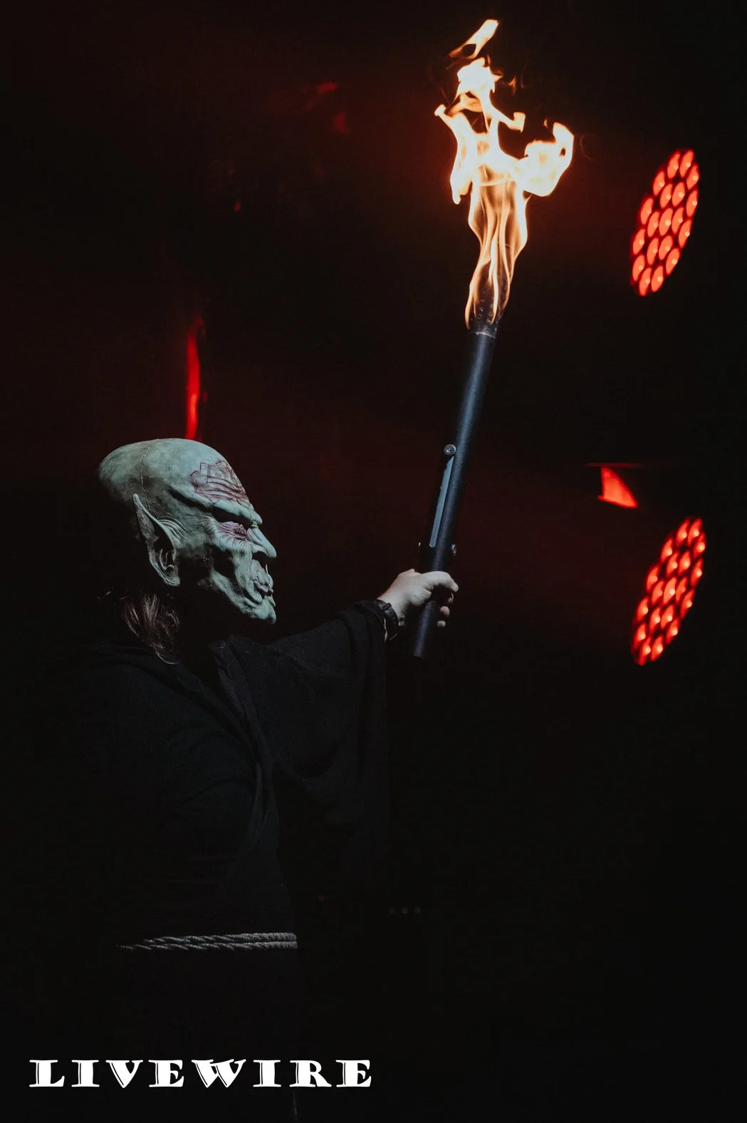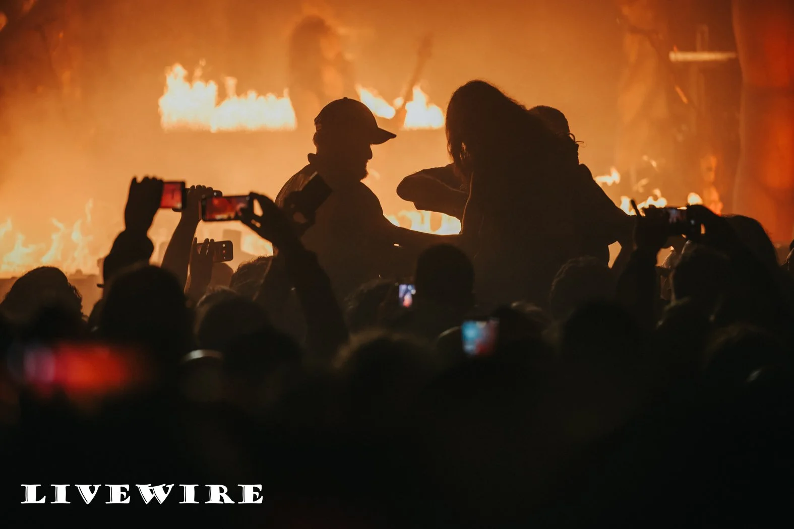 It feels like the whole auditorium can now breathe in. The flames have assisted the mosh pit in ramping up the temperature and its so hot in here now, the cool street air a blessed relief.