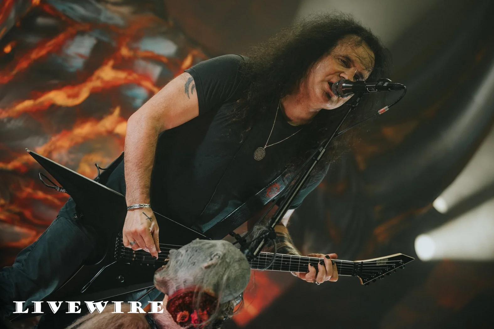 The night could have ended now with that performance from carcass, but there was more to come….. much more ! Kreator are a German thrash metal band from Essen, formed in 1982, and the line up currently consists of Miland "Mille" Petrozza (guitar & vocals), Jürgen "Ventor" Reil (drums), Sami Yli-Sirniö (guitar) and Frédéric Leclercq (bass). From their debut “Endless Pain” released in 1985, they’ve gone on to release 16 studio albums, the most recent being their new 2026 release “Krushers of the World”. Like with Exodus’ “Goliath” Kreator’s new album is equally impressive.