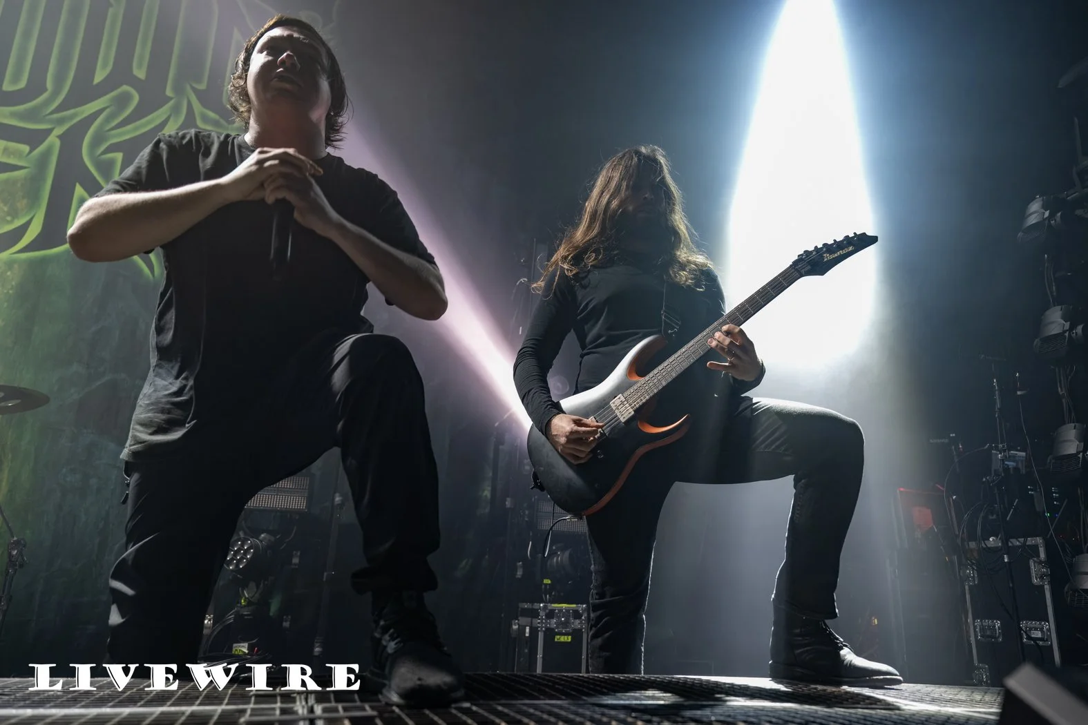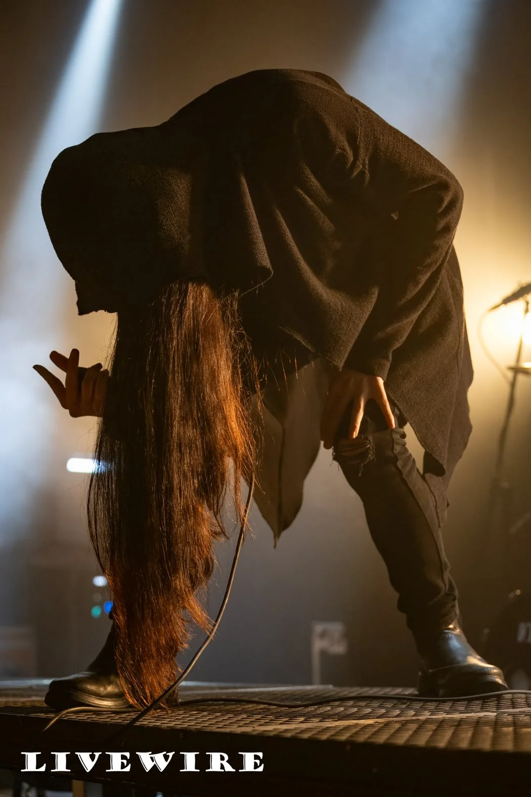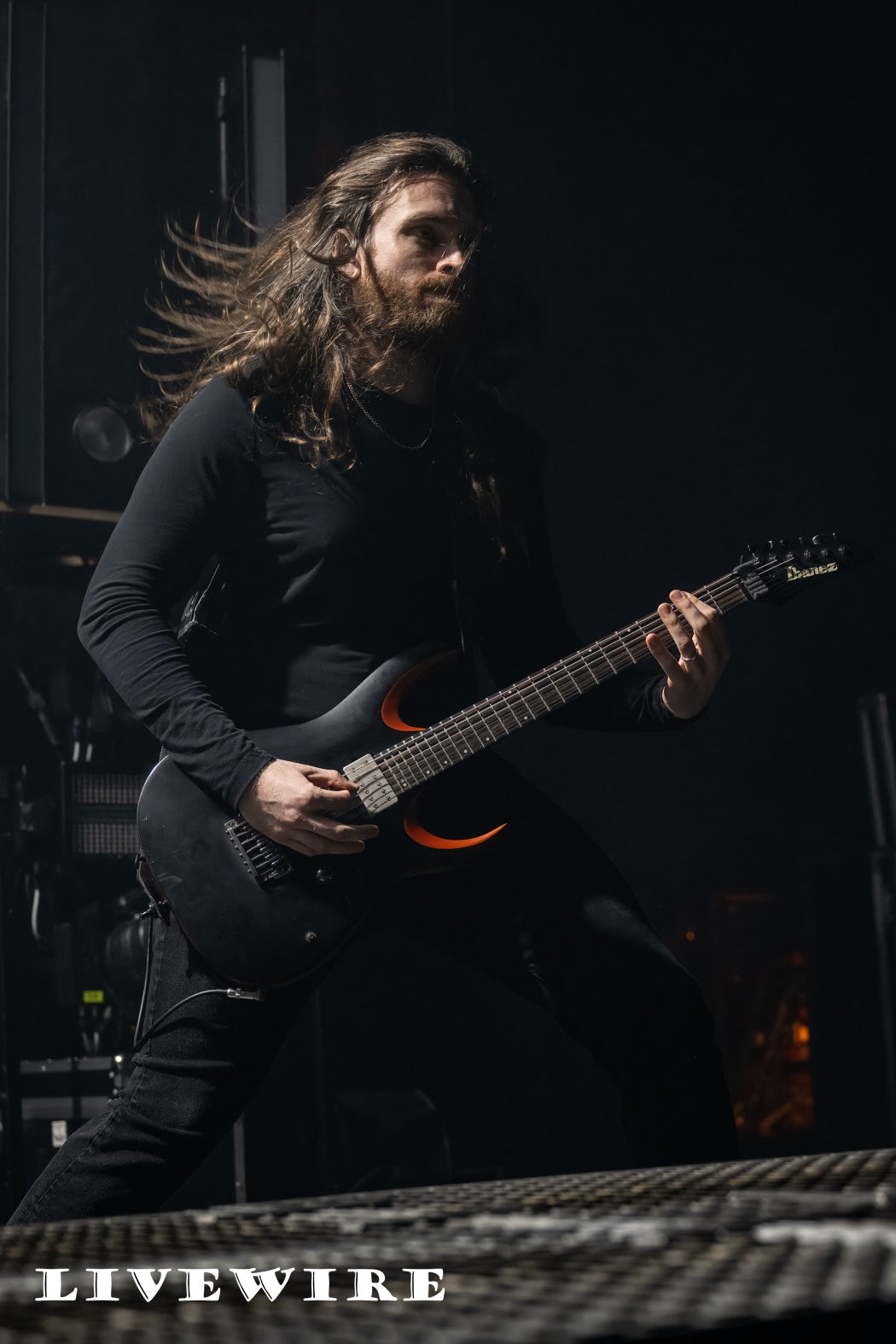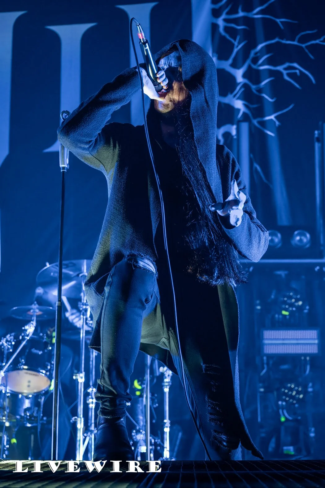 And what a start to the night this was ! Humanity’s Last Breathe are not about speed, it’s doom laden, dark and heavy that immerses you in the depth of their sound. Filip, dressed in a long hooded robe, long dark hair also hiding his features stalks the stage menacingly as he delivers some deep dark growls. Klas on drums pulls the sound together, delivering it’s beating heart, the base of their crushing sound.