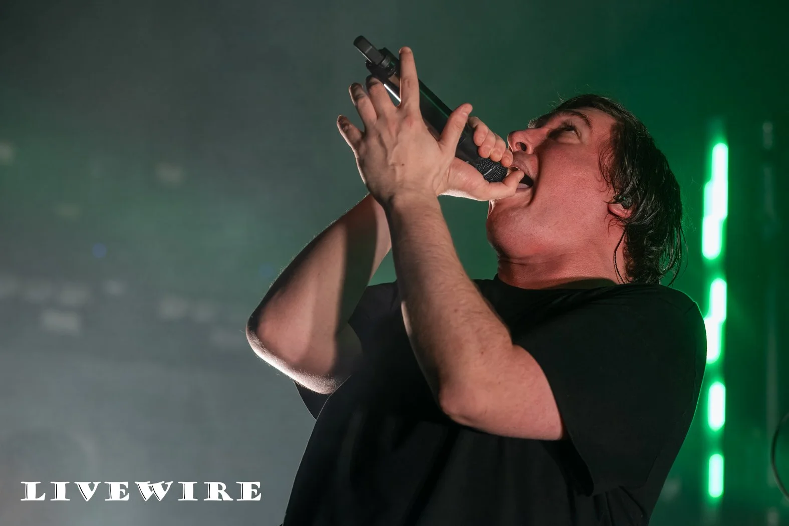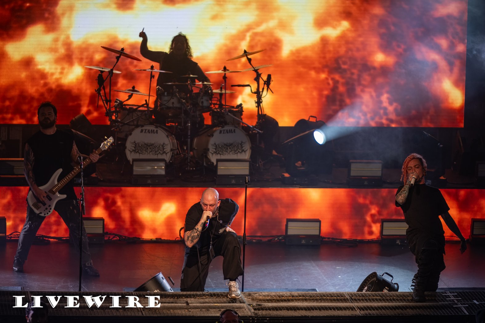 A we wait for Lorna Shore to arrive, we are entertained by a wide range of tunes across the PA. As they are ready to step into the light, we’re greeted with the unexpected tones of the Bonny Tyler hit Total Eclipse of the Heart which has the whole crowd singing along. The curtain drops and Lorna Shore explode into action with Oblivion. If you thought Whitechapel were insanely good…. That dial just got turned to 11 !