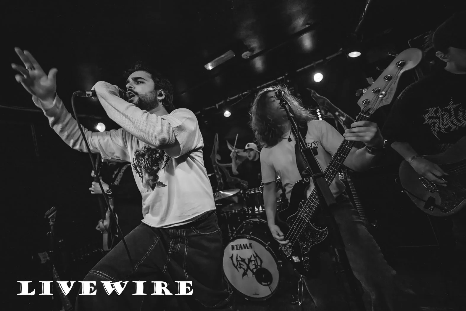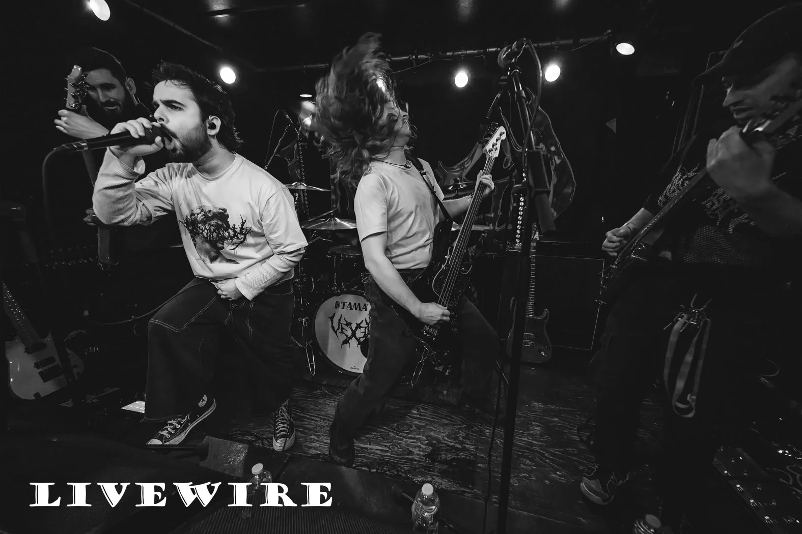 The night has flown by and it’s 21:30 and time for tonight’s headliners Vexed. Formed in 2019 in Hertfordshire, Vexed are Megan Targett (vocals), Willem Mason-Geraghty (drums), Olly Hall (guitar) and Meyrick de La Fuente (bass). They released their debut album “Culling Culture” in 2021 and followed that up with 2023’s “Negative Energy”.